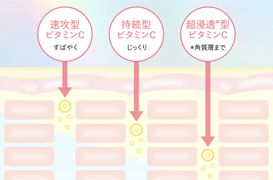速攻型、持続型、浸透型の性質の異なるビタミンCを組み合わせ、段階的に成分がじっくりと浸透*。