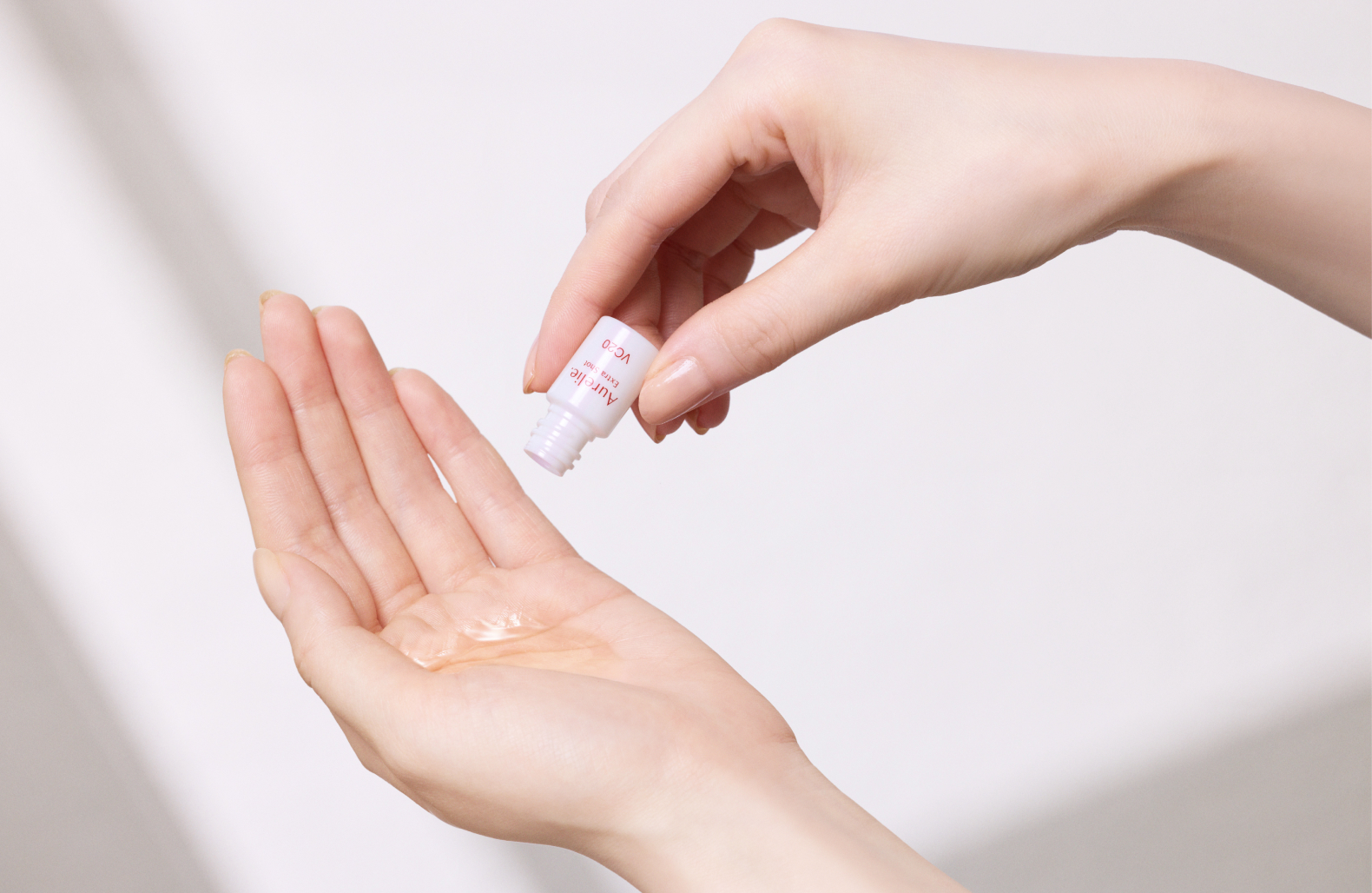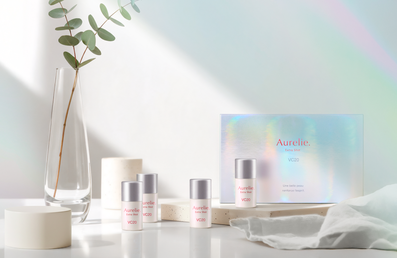*1 : リン酸アスコルビルMg、アスコルビルグルコシド、3-O-エチルアスコルビン酸、アスコルビン酸、パルミチン酸アスコルビル(整肌成分)*2 : オレリーにおいて *3 : 年齢に応じたケア