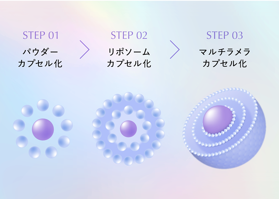 壊れやすく安定化が難しいレチナールを毛穴の約1,500分の1にリポソーム化。角質層の深部まで成分を届ける。