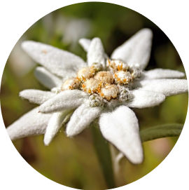 アルプスの山の女王で知られるエーデルワイスから抽出に成功。ピレネー山脈とアルプス山脈からヒマラヤ山脈の山々に自生する希少な植物。